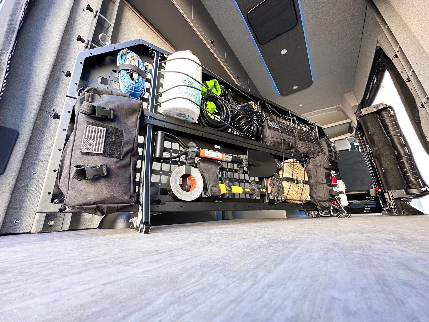 The adjustable heights of the Code 7 Bed System makes it ideal for accommodating extra tall cargo underneath, additional seating, or low sleeping options for children and pets. You can customize each side of the bed independently, offering a wide array of sleeping and seating arrangements to suit all your adventure van needs.